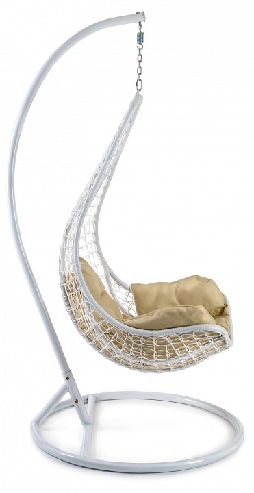 Кресло подвесное (mod. SC-010) с подушкой Металл/Искусственный ротанг, стойка:105х105х195см корзина:78х68х125см, стойка:белый,корзина:белый,